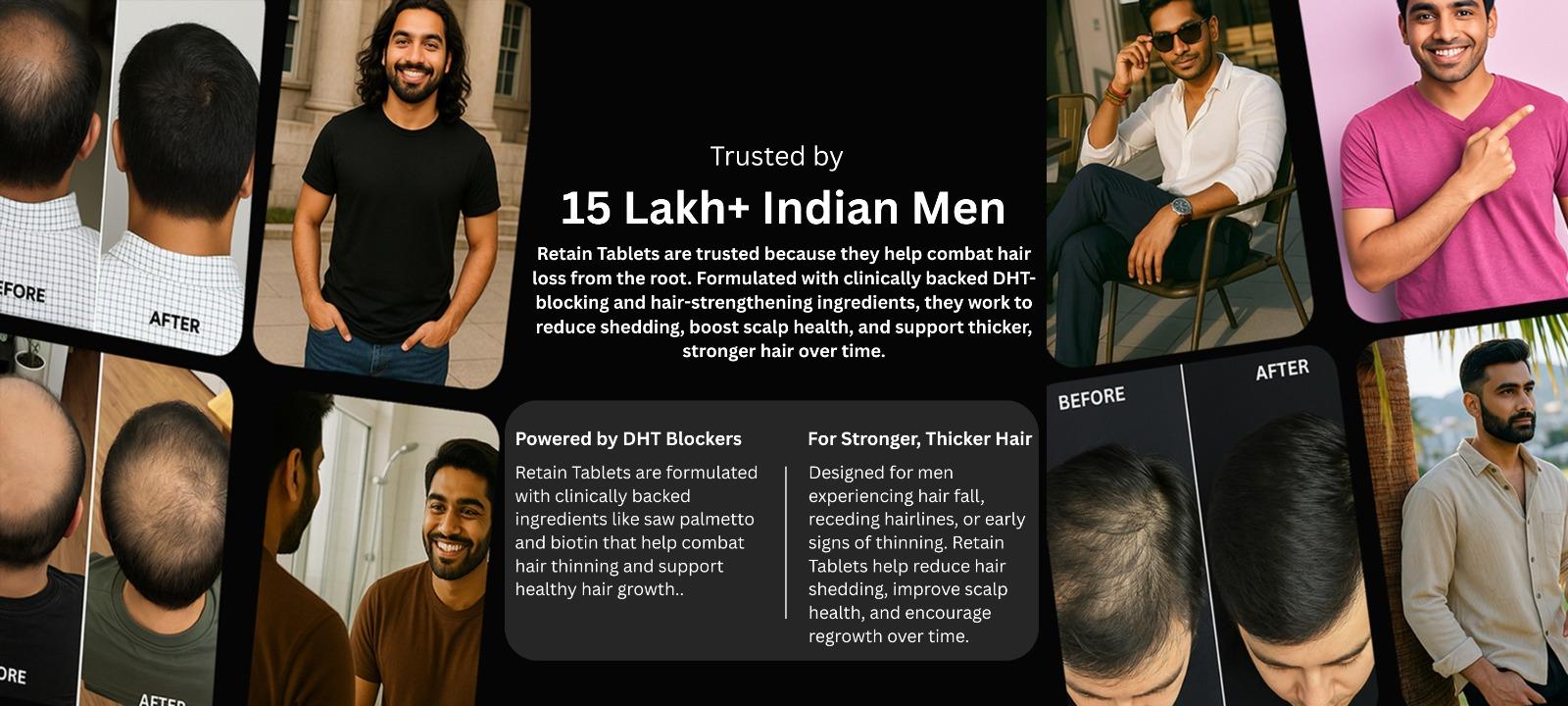 Retain Tablets are trusted by men because they deliver real results in reducing hair fall and supporting healthy regrowth of hair. With a clinically backed, safe, and nutrient-rich formula, they offer confidence and reliability that thousands of men count on daily.