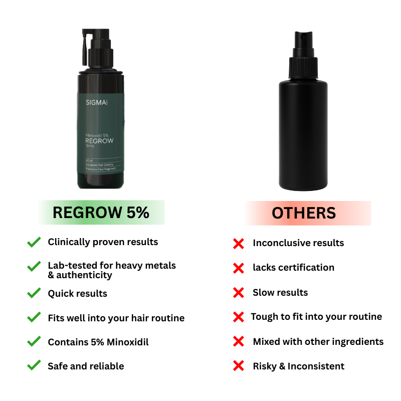 Regrow 5% is trusted by men for its proven results in stimulating hair regrowth and combating thinning at the root. With a clinically backed, dermatologist-recommended formula, it offers effectiveness and reassurance that countless men rely on to restore thicker, healthier hair.